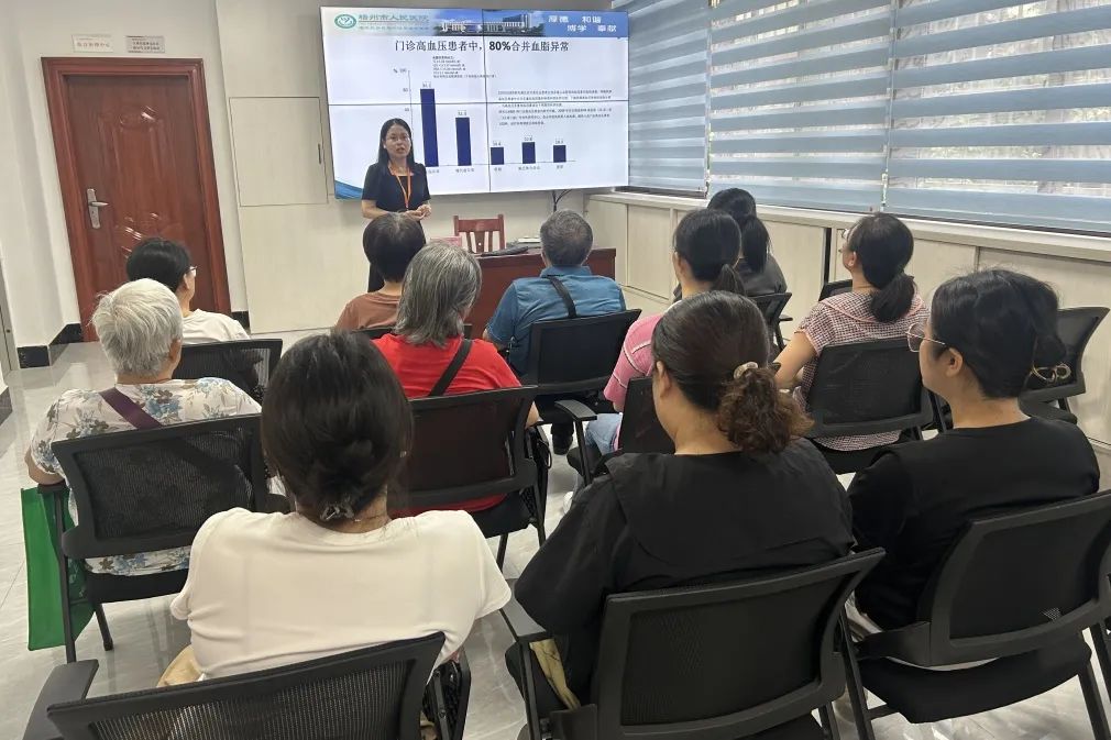 讲座邀请了梧州市人民医院健康管理中心主任医师廖毓香来为大家授课。活动伊始,廖医师用平实风趣的语言,将高血压、高血脂这两大健康“顽敌”的前世今生娓娓道来,让居民们仿佛置身于医学探秘之旅。“原来每天吃盐多了,血压会‘抗议’啊!”张阿姨恍然大悟的感叹,引发了全场共鸣。而随后的互动环节,更是点燃了现场居民的热情。大家纷纷举手提问,廖医师专注倾听每一个问题,结合居民的年龄、病史、血压测量和生活习惯,给出定制化的健康锦囊。